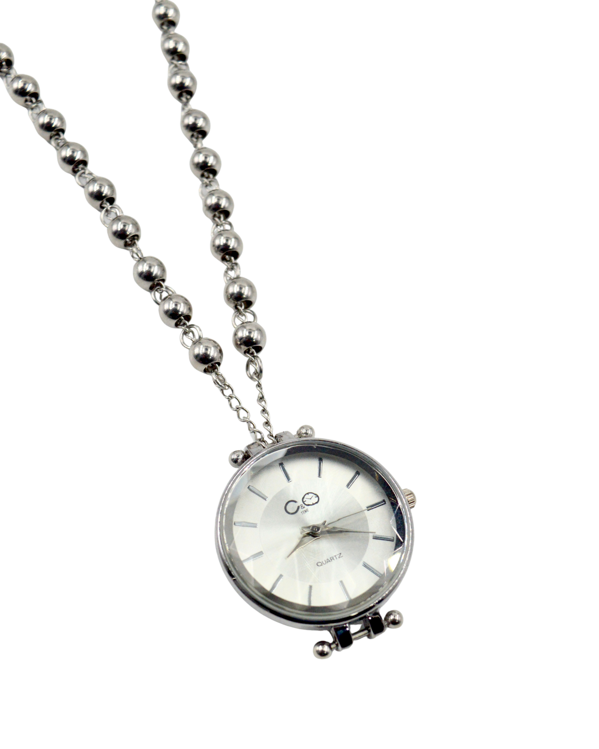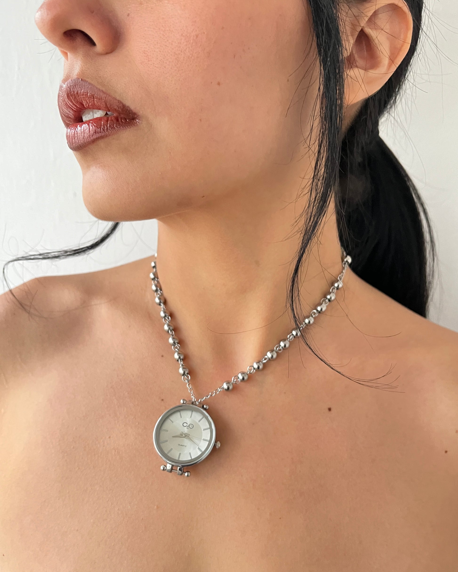 collar reloj pieza única, hecho con cadena de acero inoxidable.